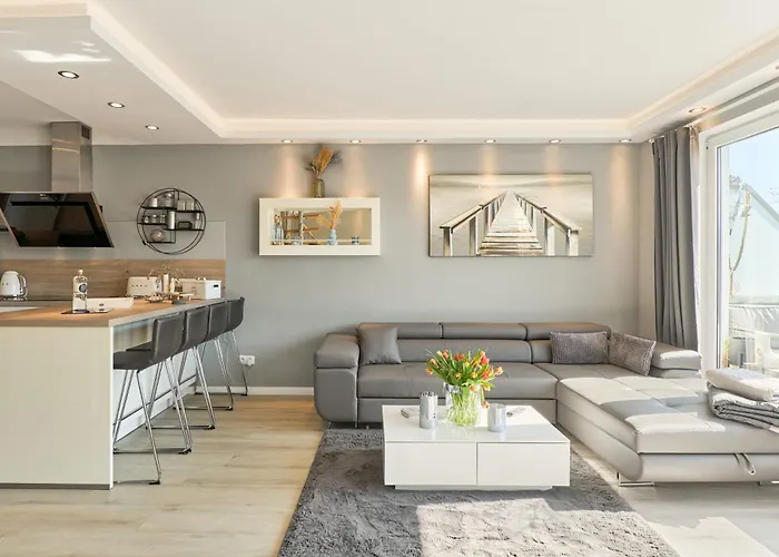 Auszeit Timmendorfer Strand ferielejlighed ligger 6 km fra Der Alte Leuchtturm Travemünde og tilbyder indkvartering med Wi Fi i hele ejendommen. Boligen har et fuldt udstyret køkken som er udstyret med kaffemaskiner/tekedler, et køleskab og køkkenudstyr.